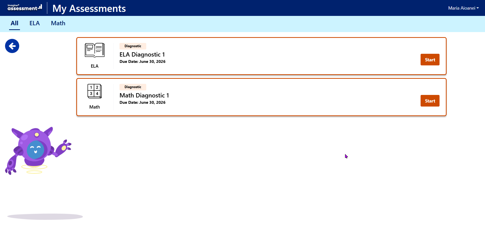 What the Imagine+ Assessment IsThe Imagine+ Assessment (Diagnostic) is an online test used to measure a student’s current skill level in Math and English Language Arts (ELA). It helps teachers understand what a student already knows and what they need to learn next.What this assessment doesDetermines grade-level placement so students begin at the right levelMeasures strengths and areas for growth in Math and ReadingTracks student progress over timeHelps teachers personalize instruction based on results What students should expectAbout 30–45 questions per subjectUsually takes 45–60 minutes per subject (Math and/or ELA)Questions may include:Multiple choiceDrag-and-dropFill-in-the-blankThe test adapts to the student — questions get easier or harder based on answers. Step-by-Step Student InstructionsHow to Start the Imagine+ AssessmentLog into the Bridgeway Learning Center (BLC).Click ClassLink from the menu.From the ClassLink Launchpad, click the Imagine+ Assessment icon.You will see a list of available assessments (such as ELA Diagnostic 1 or Math Diagnostic 1).Click Start next to the assessment.Carefully listen to the directions before beginning.These steps match the normal student flow, where students click the assessment tile and then select Start to begin the assigned test.Important Instructions for StudentsThese are the most useful “how to succeed” instructions to include in your KB article.Before You BeginFind a quiet place with minimal distractionsUse a fully charged computerHave headphones available (some questions include audio)Do not rushDuring the AssessmentRead or listen to each question carefullyTry your best answer, even if unsureThe test will adjust to your answersYou may pause and return later, and your progress will be saved (if allowed by your school) After You FinishYour answers are automatically submittedTeachers review results to determine:Starting levelLearning goalsSupport needsThe results are used to place students into the correct instructional path.